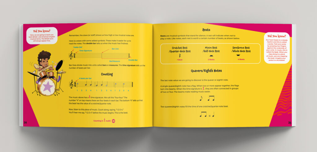 Despite the challenges that came our way, I’m proud of what we created – a fresh and modern interactive children’s music education book that I hope will inspire and educate the next generation of musicians!