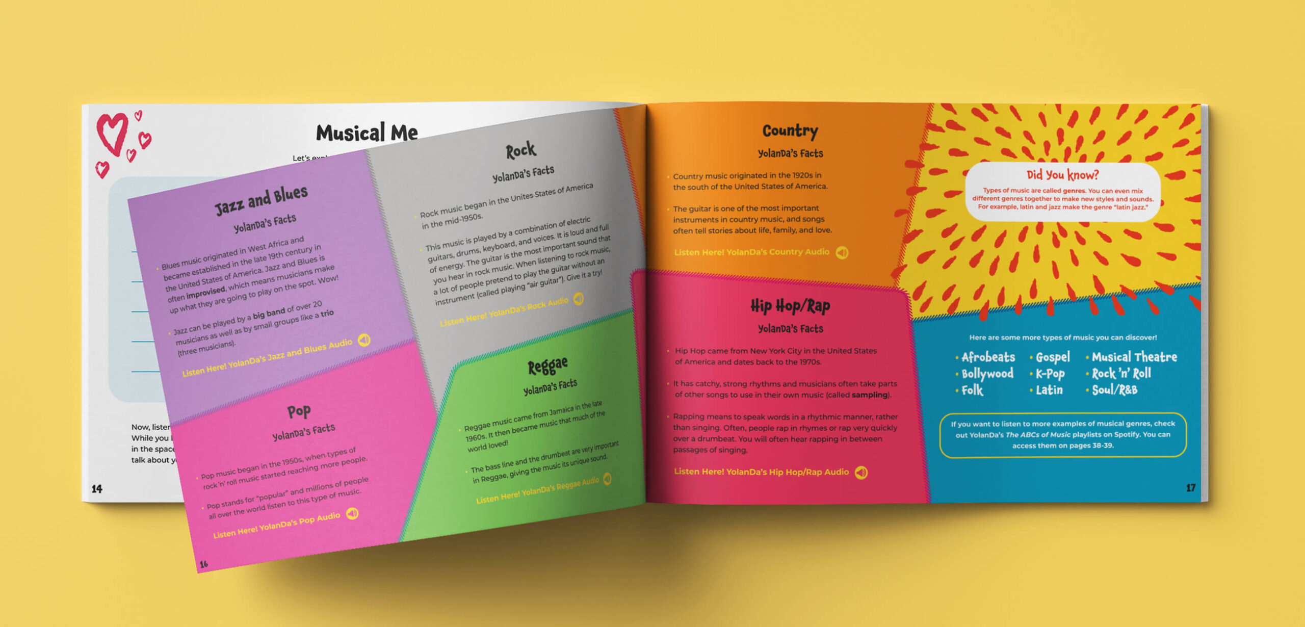 Working closely with the editor, YolanDa and an illustrator, I designed a colorful, playful, and engaging activity book that incorporated her fun personality and signature style.